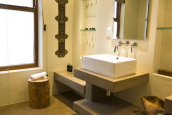14 open plan suites with beds centered under skylight with private dressing area behind, Spacious bathroom open to bedroom with deep bath, walk in shower and double sinks, Option of either Twin or King Size beds available on request, Wood Fire Place, Deck, Mini bar, Tea station, Telephone, Internet Access & Safe, Approximately 60m² in size,