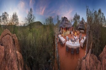 Our unique outdoor enclosure - the boma - offers the traditional and elegant atmosphere of dining under African stars while on safari in South Africa.